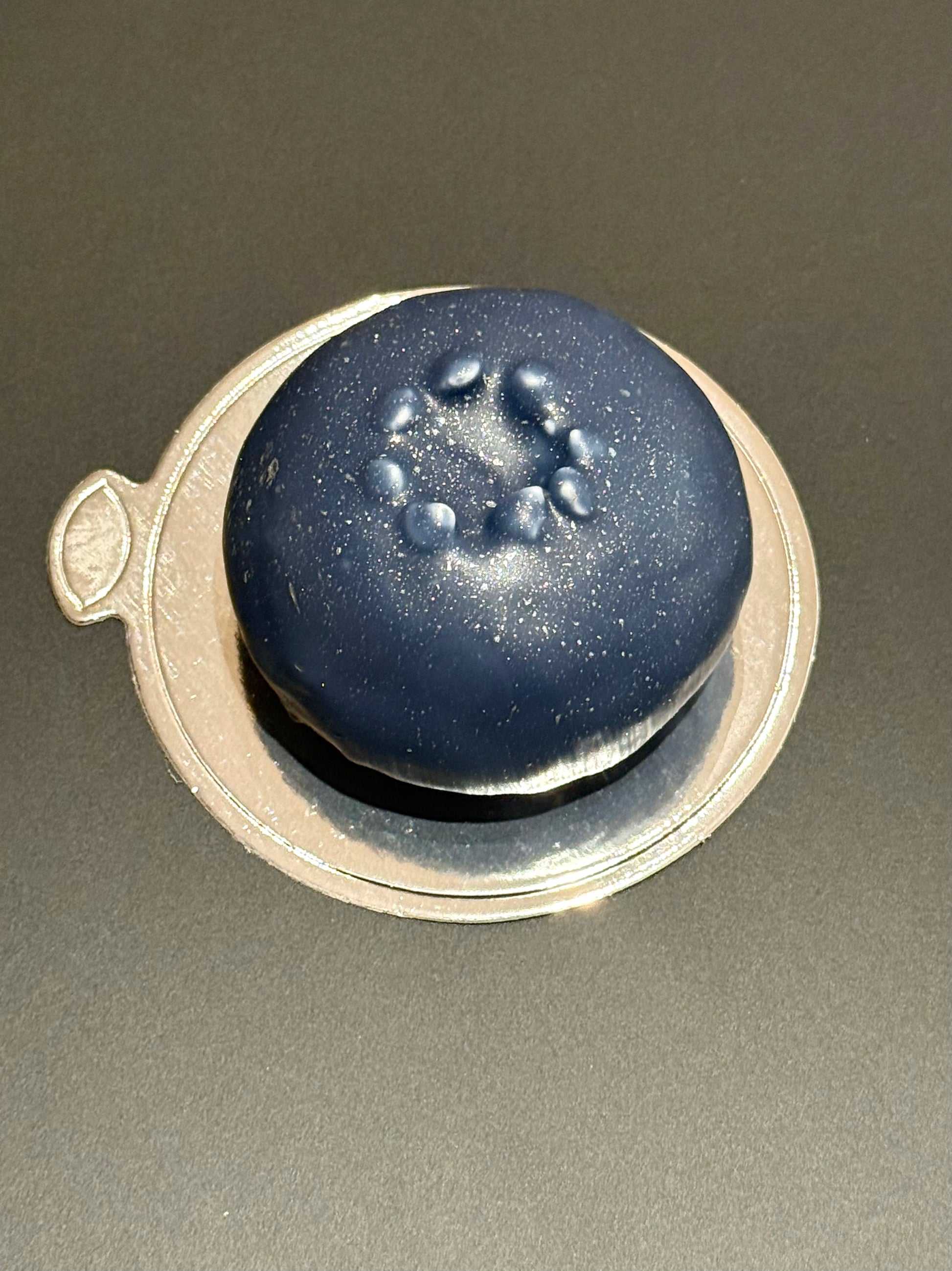 Light coconut whipped ganache, black current filling with whole blueberries & thin crunchy chocolate shell.